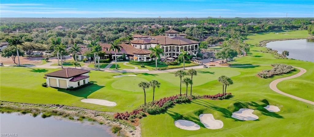 Beautifully renovated, turn-key furnished carriage home in the Triana neighborhood of The Club at Renaissance - one of South Fort Myers' most sought-after private golf communities. This exceptional second-floor residence offers 2,802 sq ft of refined living with golf course and lake views. The ground level features a private entry, two-car garage, and your choice of an elegant wrought iron staircase or private elevator to the main living floor. Upstairs, soaring ceilings and a dramatic arched colonnade with decorative columns define the open great room, which flows to the screened lanai overlooking the Arthur Hills championship course. The lanai is equipped with electric roll-down storm shutters for year-round convenience. The renovated kitchen features white raised-panel cabinetry with gold hardware, quartz countertops, geometric tile backsplash, under-cabinet lighting, stainless appliances, and a peninsula with bar seating. A breakfast nook with corner windows frames golf course views. The utility room offers a front-load washer and dryer, quartz countertops, utility sink, and ample cabinetry. The primary suite features a walk-in closet, tray ceiling, hardwood floors, and golf course views. The en-suite bath includes a double vanity with granite countertops, soaking tub, and walk-in glass shower. Two guest bedrooms offer tray ceilings, hardwood floors, and plantation shutters. The den is an ideal home office. The oversized media room features triple arched windows, plantation shutters, a built-in bar with wine cooler, and hardwood floors. The Club at Renaissance is a private, gated community on 500+ acres featuring an Arthur Hills championship golf course, resort-style pool and pavilion, full-service spa and fitness center, six red clay tennis courts, two pickleball courts, two bocce courts, and a children's play area. Year-round dining and social programming complete the lifestyle.